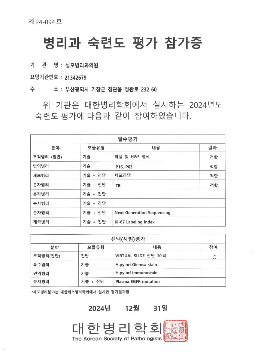 3. 2024년 병리과 숙련도 평가 참가증