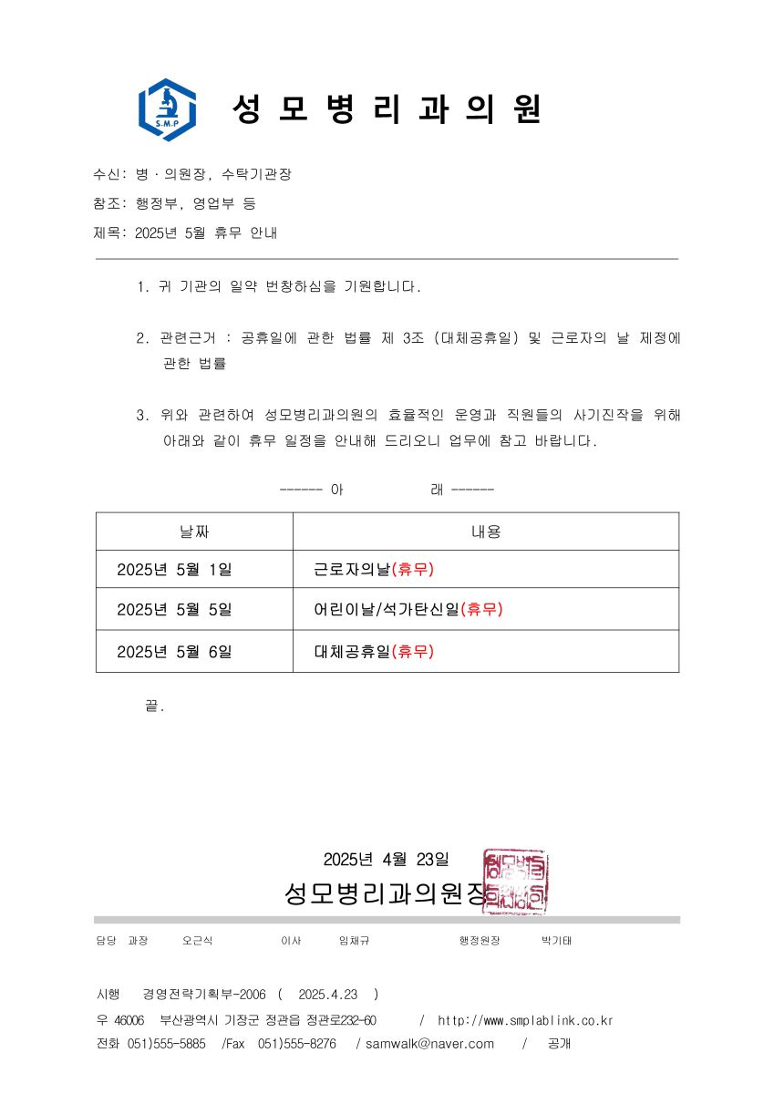 [경영전략기획부-2006] 2025년 5월 휴무 안내